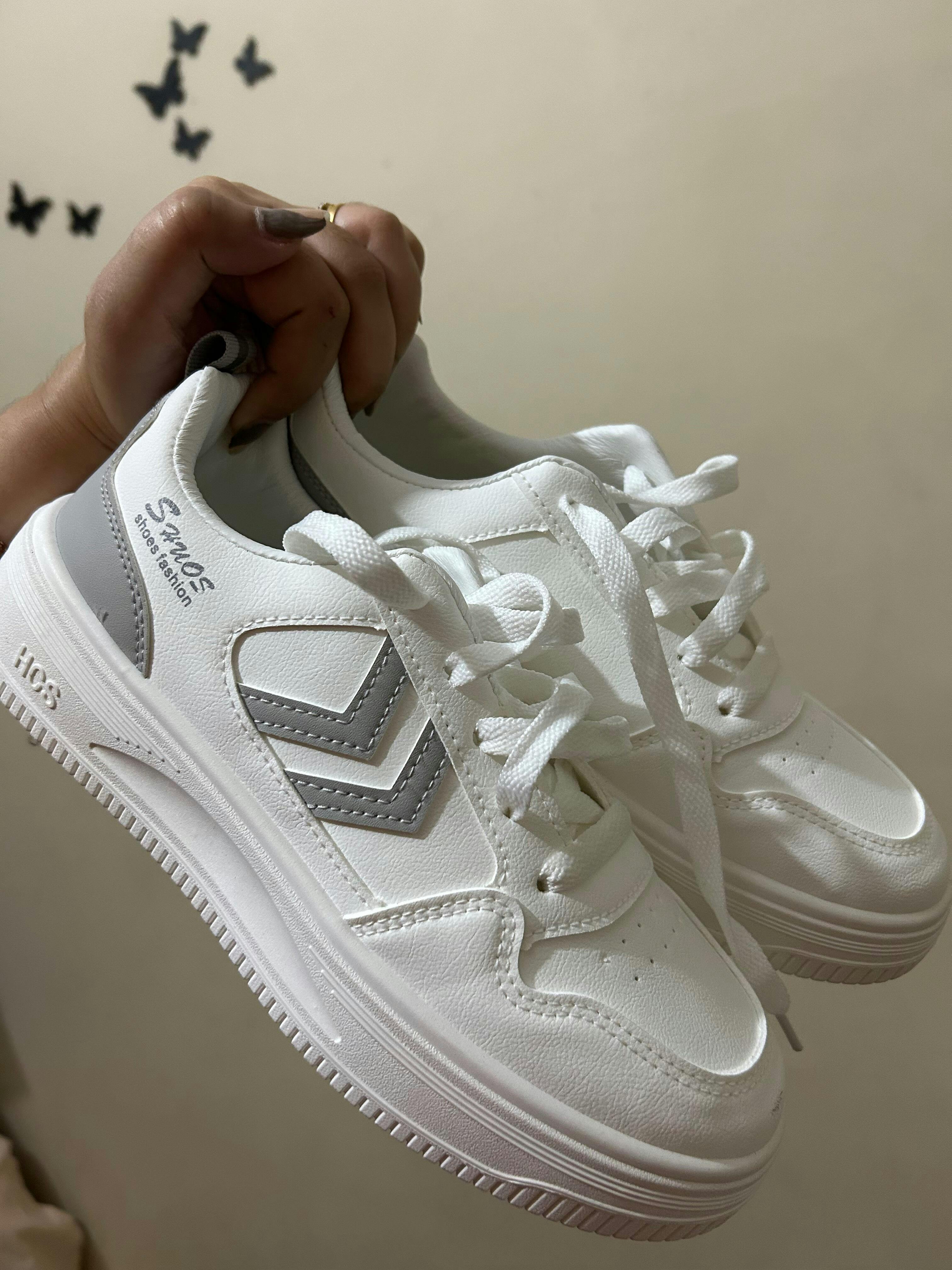 These stylish white sneakers are designed especially for girls — combining comfort, durability, and fashion. With a cushioned insole, high sole, and black chevron accent, they upgrade any outfit instantly. Ideal for casual wear, school, shopping, or outings.